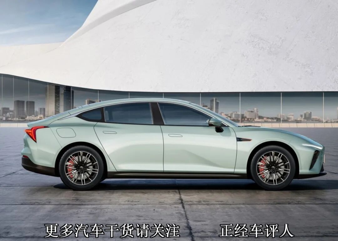 另外耀世版配备了展翼门,绿色涂装的刹车卡钳,尾部呢还配有碳纤维的尾翼,确实非常的拉风,整车设计俩字运动,整体造型呢非常低趴,然后呢全部是向着这种动感,流畅的这种设计去靠拢的
