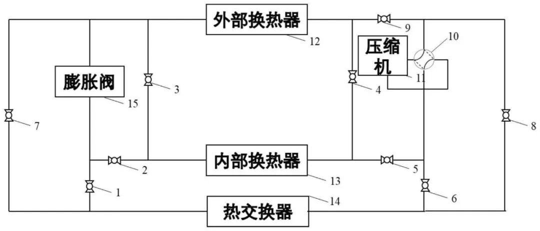 热泵空调内部主要有4大部件:压缩机,热交换器,膨胀阀和四通阀,在工作的时候,压缩机通过压缩,提高制冷剂的压力和温度,将低温低压的制冷剂,压缩到高温高压的状态,然后通过四通阀的控制,选择性的将热量传递给热交换器,然后再通过鼓风机把热量吹到车内