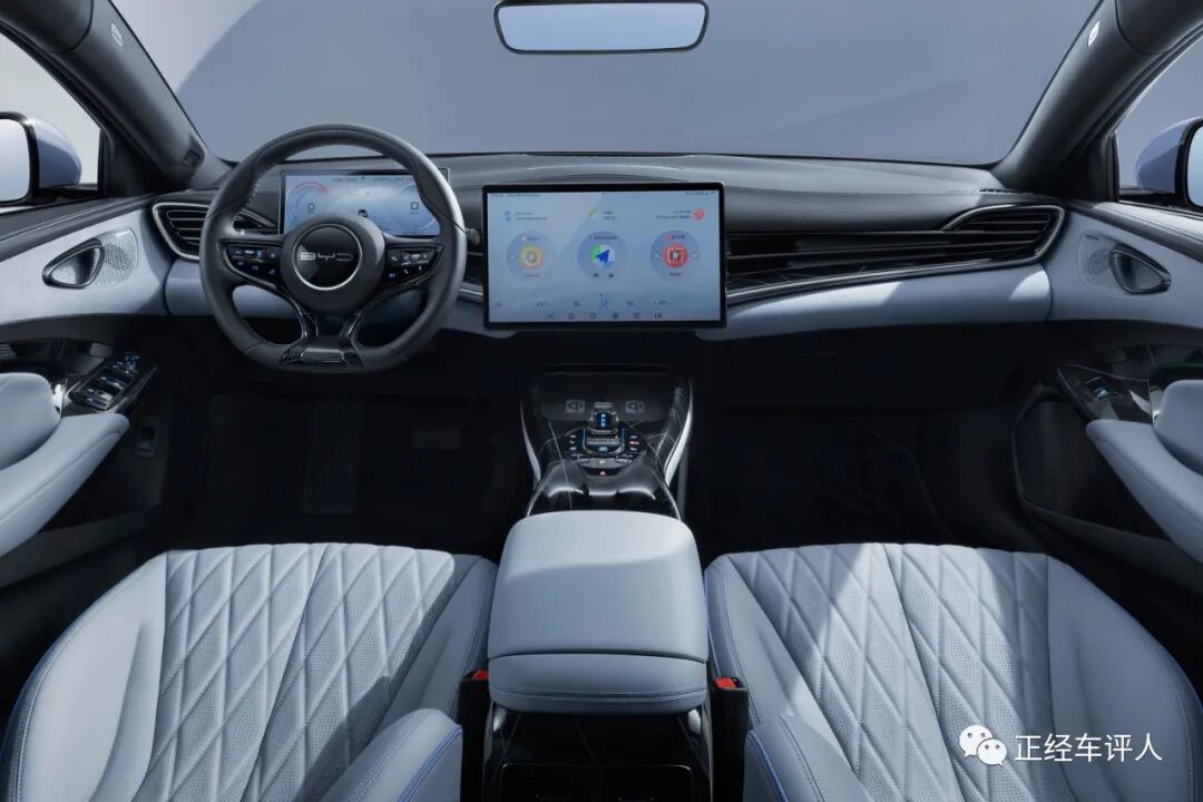3太过极简大家也都知道了,那么海豹的内饰呢,说实话也是很好看的,拼色的设计,海洋风格的主题,整体运动豪华的氛围,营造的也是恰到好处,至少如果你对老婆说你想买这款车,老婆看了是绝对不会反对的