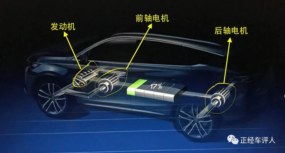 那要解决高速耗电少,又要增加保证里程,目前最常见的方法呢就是使用双电机,一个低速电机,一个高速电机