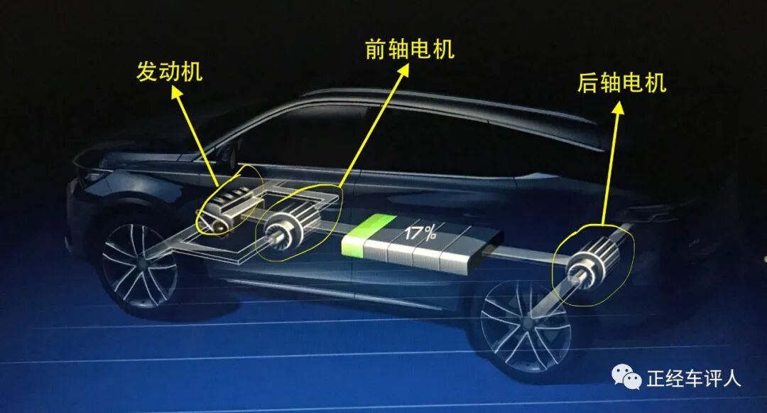 那就从内燃机车上把发动机给接过来,可是你不能就这么赤裸裸的拿来,那样就太丢人了,于是就在发动机之外再加一块大电池,这就是插电混动