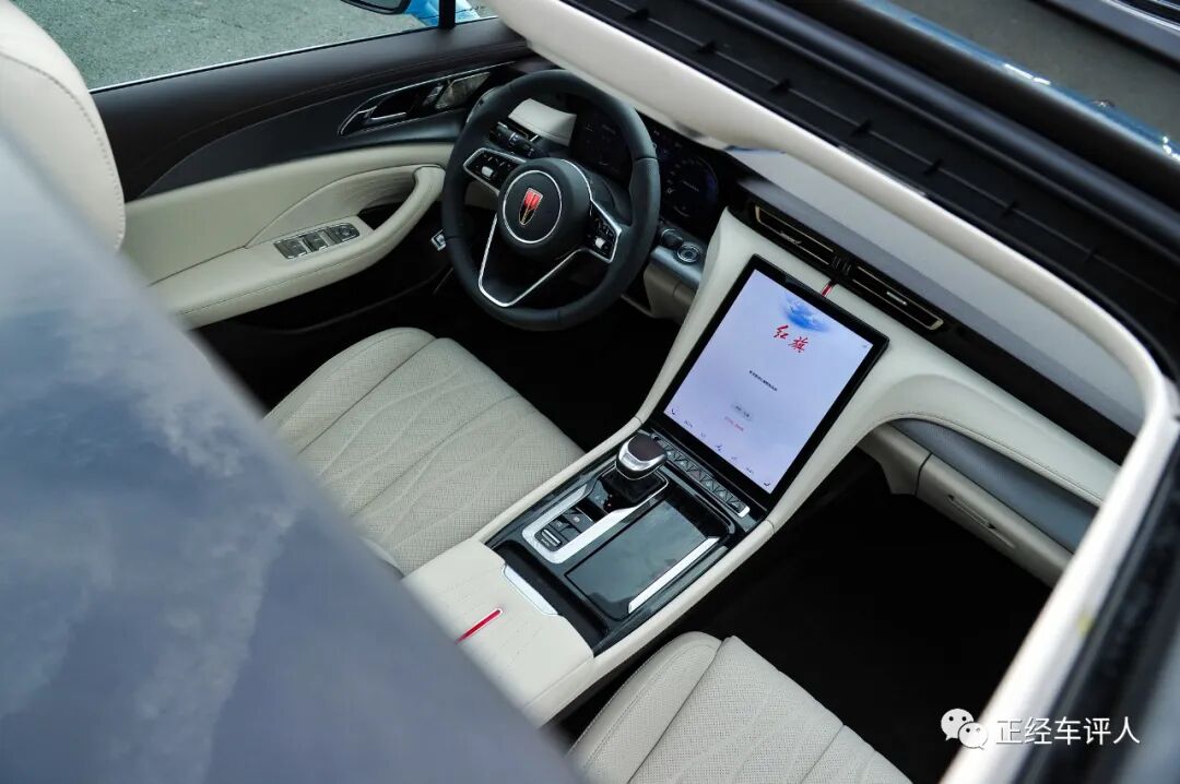 内饰的风格也是如今的潮流,不过你依然可以找到一些红旗的经典元素,车内呢依旧有红旗的LOGO做点缀,全液晶的仪表和中控大屏依然是成为了如今车型的主流配置,传统的梯形布局的中控台呢,也让红旗H5的车内充满着庄严的氛围