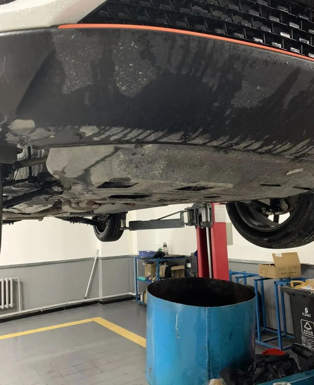 一边放机油,一边保养师傅就开始对底盘进行了仔细的检查,各个部位的螺丝,都用手去拧了一下,防止有螺丝松动现象。我也跟着有模有样的看起了底盘来,看看底盘有没有磕碰或者刮伤的现象(一切正常),毕竟是第一次看自己车子的底盘,还是很好奇的。一切检查完毕,小哥告诉我,底盘没有热河问题,让以后开车还是要多注意点,免得真的刮坏了,就麻烦了。