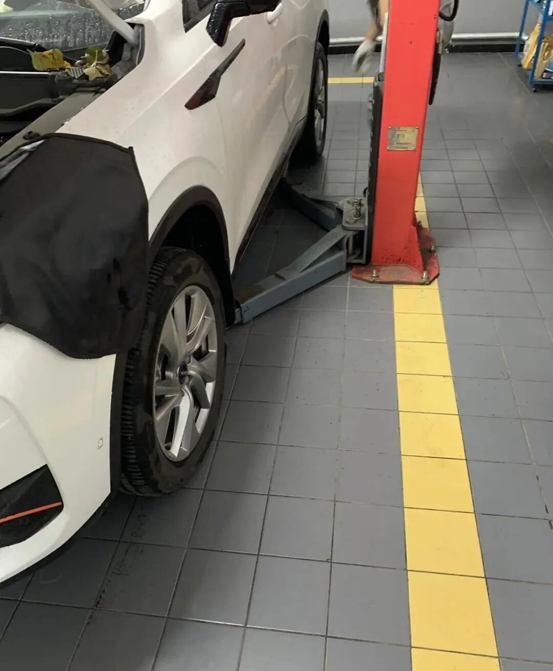 到店后,售后小哥给我做了个登记,询问了我一下车有什么问题,我把这6个月的感受跟小哥描述了一下(大概就是转向的时候有异响以及刮到过底盘)登记后就准备上架子了,也没有推荐其他的一些收费项目。