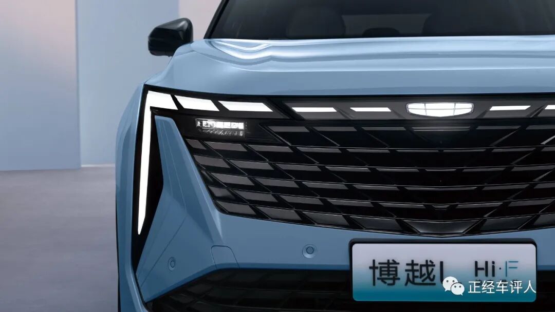 不得不说这辆车它的外观设计,真的是十分的前卫,大尺寸的进气格栅,完全看不见老款博越的影子,而且我觉得它前脸最大的亮点就是它分段式的日行灯设计,点亮过后非常的好看,中间的LOGO也是可以发光的,所以整个前脸的设计就非常的有科技感