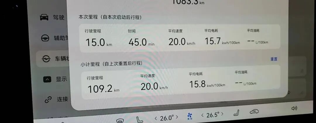 开了1500多公里了,极度堵车和暴晒的情况下电耗到了19