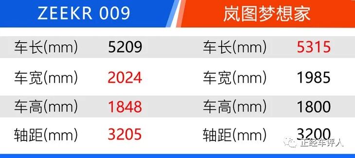 对于MPV产品,最重要的就是车身数据以及内部空间的表现。通过对比,ZEEKR