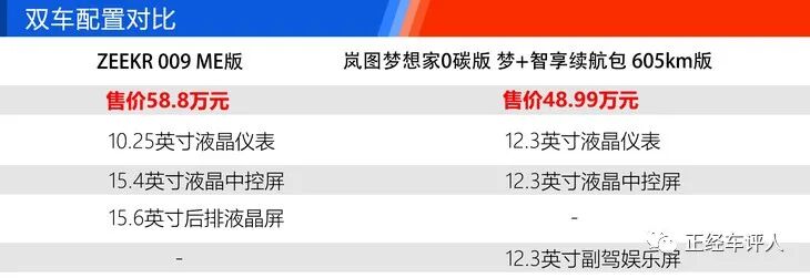 除了空间以及动力续航的表现,目前市面上的MPV产品在配置上也都足够丰富,两款车有怎样的表现呢?还是以ZEEKR 009 ME版以及岚图梦想家0碳版