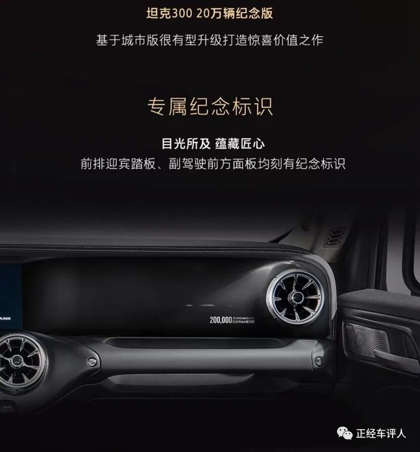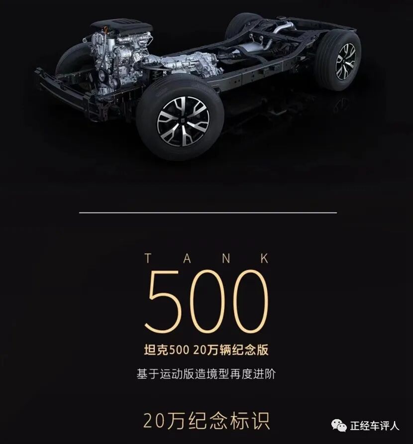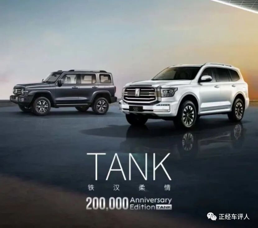 日前,我们从坦克品牌官方获悉,坦克300与坦克500将推出20万辆纪念版车型,定于11月7日上市,各限量发售500台,整车在外观设计上并没有太大的变化,配置上预计将有所升级,增加了“20万纪念版”的身份标识。
