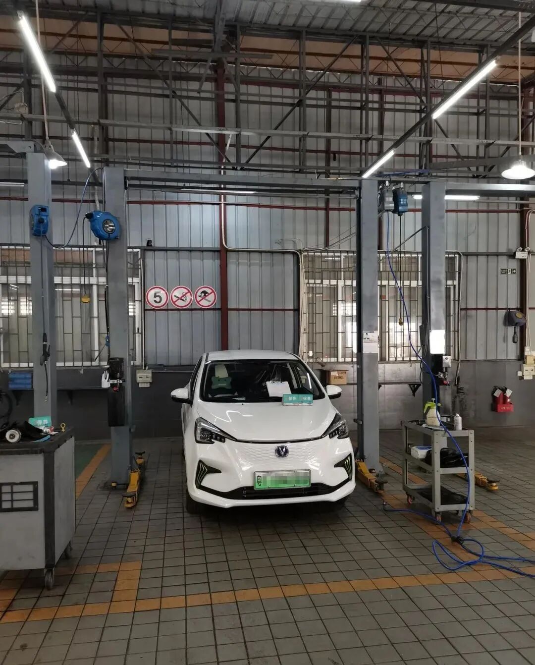 大概休息等待了20分钟,终于等到了我的奔奔进工位开始检查,准备上架: