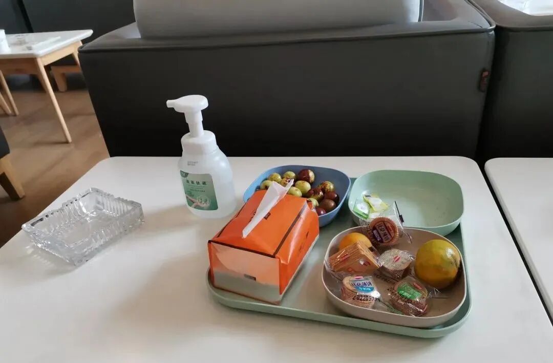 在等待的空间,去休息区喝口水,吃点零食。
