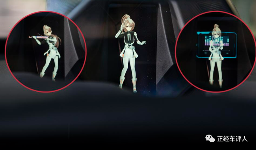 而且你还可以通过“你好YOMI”唤醒3D全息投影的卡通人物,无论是让它来一段舞蹈,还是设置导航、关闭天窗等等,都不在话下。