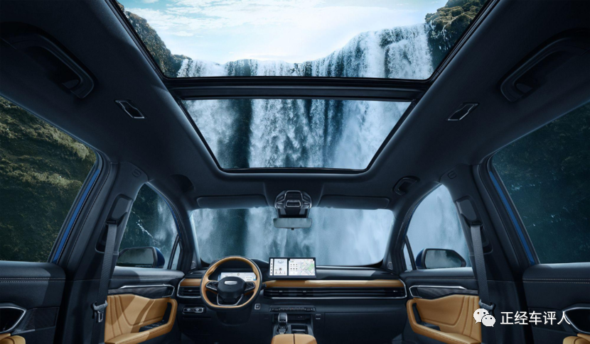 内饰方面,豪越L采用了全景座舱理念设计,更高的坐姿带来了更好的驾乘视野。新车采用了上深下浅的配色,并提供大漠棕、云杉绿两种内饰配色供消费者选择,整体风格较为居家,但又不失一定的豪华感。