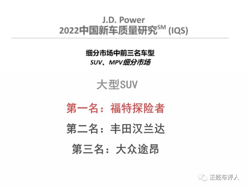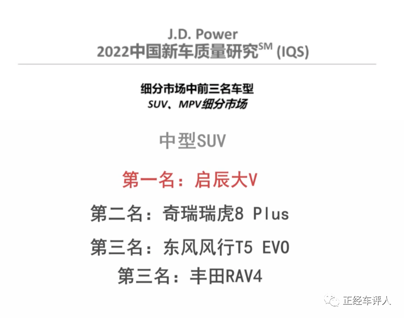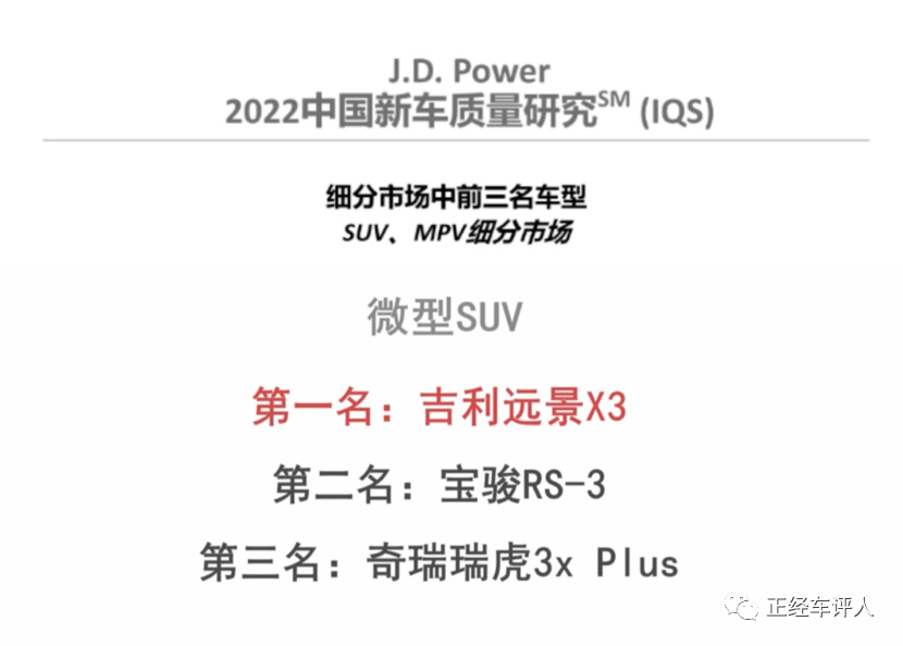 Power(君迪)正式发布2022中国新车质量研究报告。其中,在SUV市场中,有多款国产车型进入了前三榜单。需要说明的是,尽管J.D.Power确实受到不少质疑。但总体来说,它依然是目前世界上最具权威性的汽车评测机构之一,而其发布的报告也是相对而言公信力最高的调研结果之一。