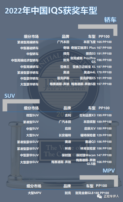 Power的评定标准:PP100。PP100指的是平均每百辆车问题数。这个分值越低,表明车辆的质量问题越少。