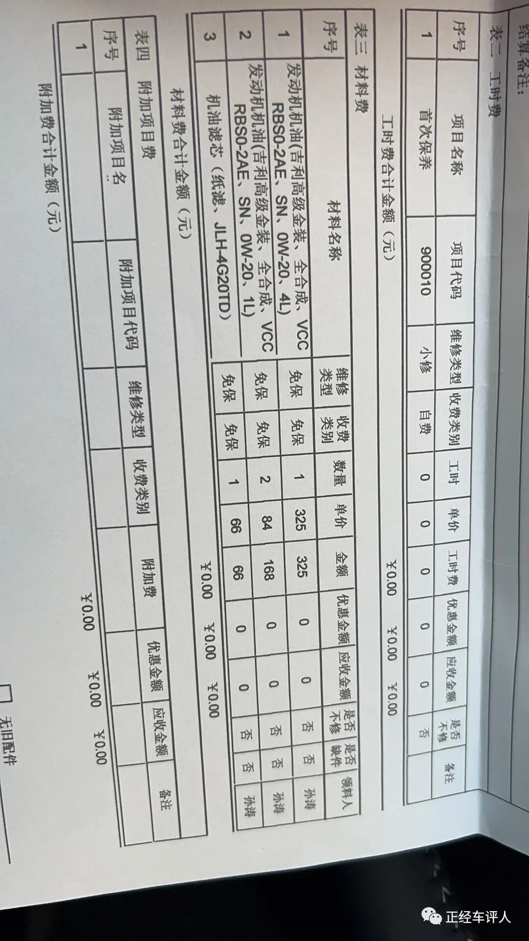 2、到店保养手续资料流程:保养当天上午9点在群里说了一声我大概2到3个小时可以到店里,就上高速出发直奔店里了。(一个人的高速使劲K歌,音量20,嗨就完了)到了4s店,刚停在售后的大门口,里面的服务人员就打开大门朝我走来。要不是我下车快,里面的工作人员就差帮我开车门了。到了店里,先倒杯茶,然后问我的意图,我说我在群里预约了中午的首保,然后指定的保养顾问就给我填写资料,详细的告诉我保养哪些项目,基础的更换机油(4L+2x1L的吉利高级金装全合成VCCRBS-2AE