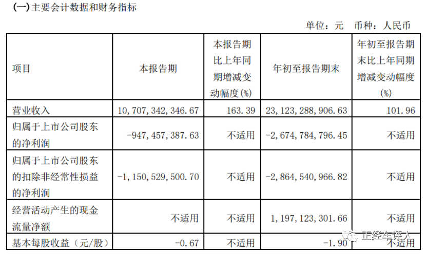从赛力斯集团公布的第三季度财报内容中可以看到,赛力斯集团第三季度营业收入107.07亿元,同比增长163.39%,前三季度营收231.23亿元,同比增长101.96%,已经超过了去年全年的营收。但是,今年第三季度净亏9.47亿元,前三季度累计净亏26.75亿元,扣非后净亏达到28.65亿元。