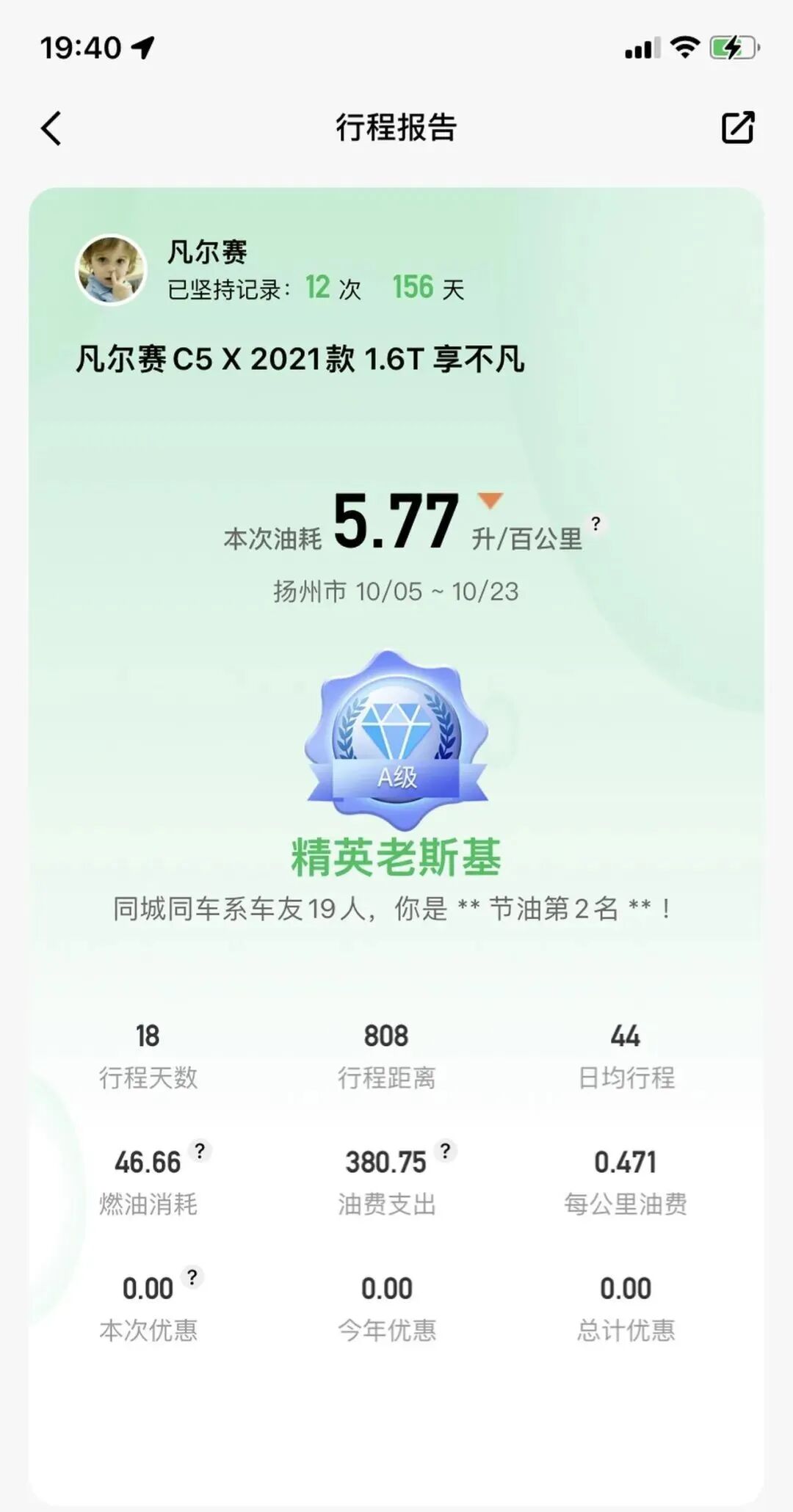 这是上次加油,小熊油耗计算的油耗和里程