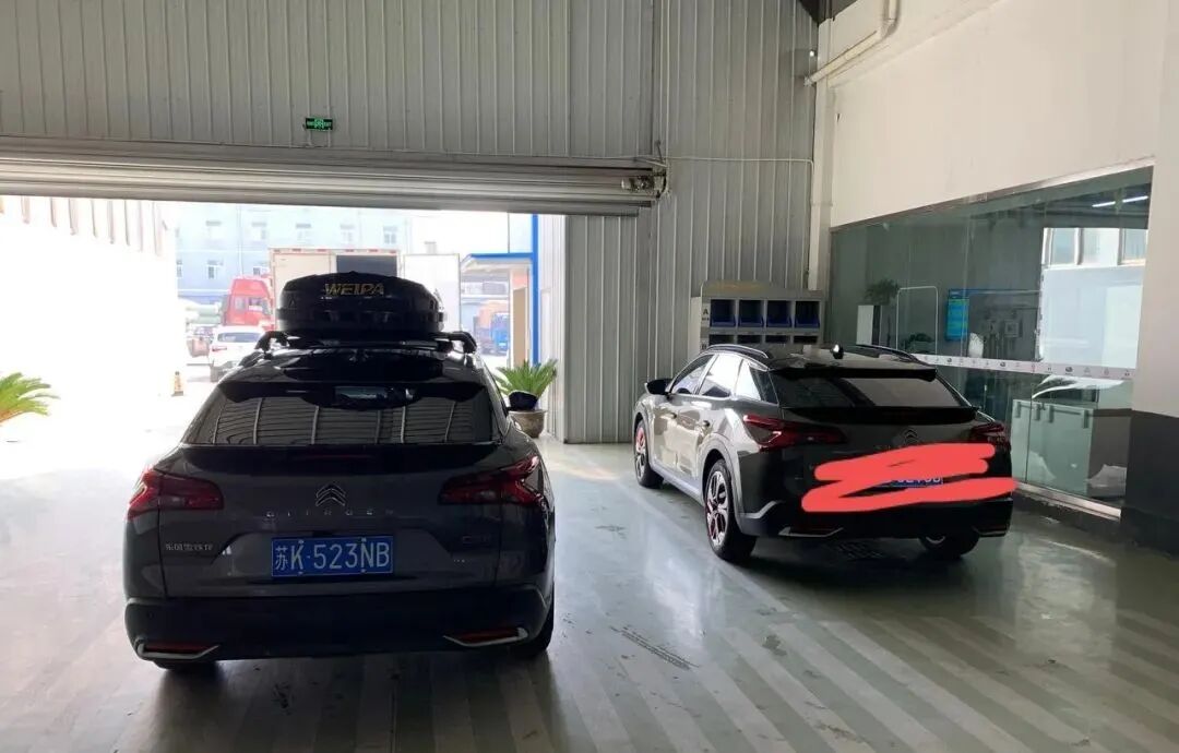 刚好有个琉金绿的车友保养完没有走,安装完行李箱的凡尔赛和没有安装的凡尔赛的比较,各花入各眼,我觉得有了小书包的凡尔赛完胜。