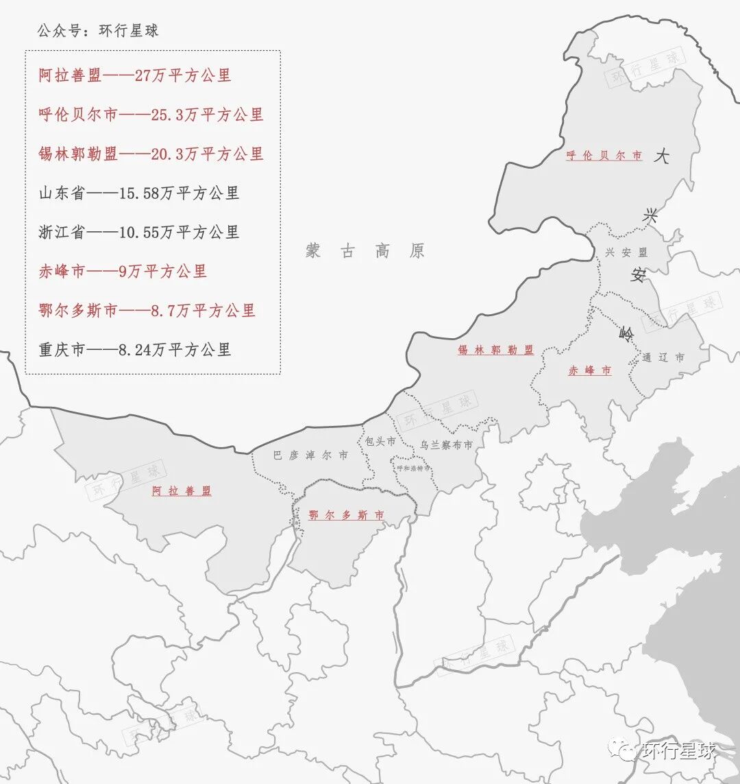 在内蒙古内,呼伦贝尔市的大仅次于阿拉善盟