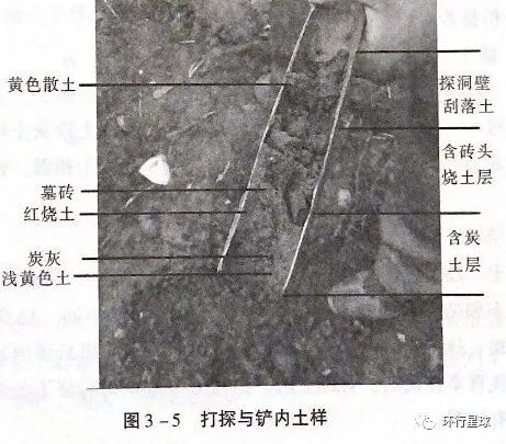 在正式发掘之前我们会进行考古调查和勘探,有一次我跟着老师背着RTA到一个山上去踩点,同行的男生是力气的担当。除了定位,我们还会用探铲打样,探铲大家应该很熟悉就是俗称的洛阳铲。一铲子下去能看到不同地层的土壤。