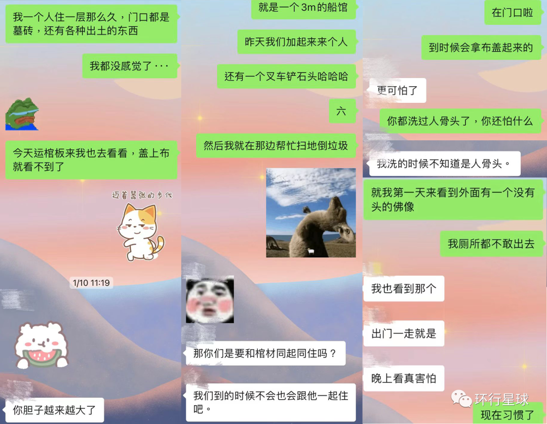 盗墓一点都不酷,只是为了私欲和财富,而考古想要透过遗存,复原曾经的人类社会,我们想探索的是历史。所以我没有什么忌讳的,特别在半个月后我的窗户外多了一副木棺。老师们怕大家看着不舒服,还特意用油布盖的严严实实。