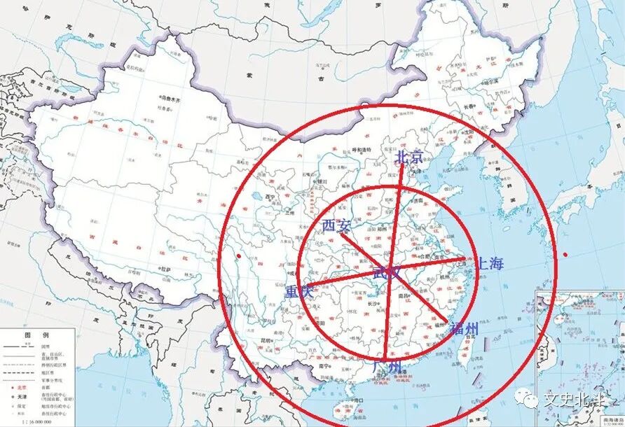 第一个方案:定都武昌。他说“定鼎者,南方诚莫武昌若”,“武昌扬灵于大江,东趋宝山,四日而极,足以转输矣……北望襄樊以镇抚河雄,铁道既布,而行理及于长城,其斥侯至穷朔者,金陵之绌,武昌之赢也。”他看到了武昌在中国版图中的重心位置,是南北铁路要道和长江水运的中心位置。