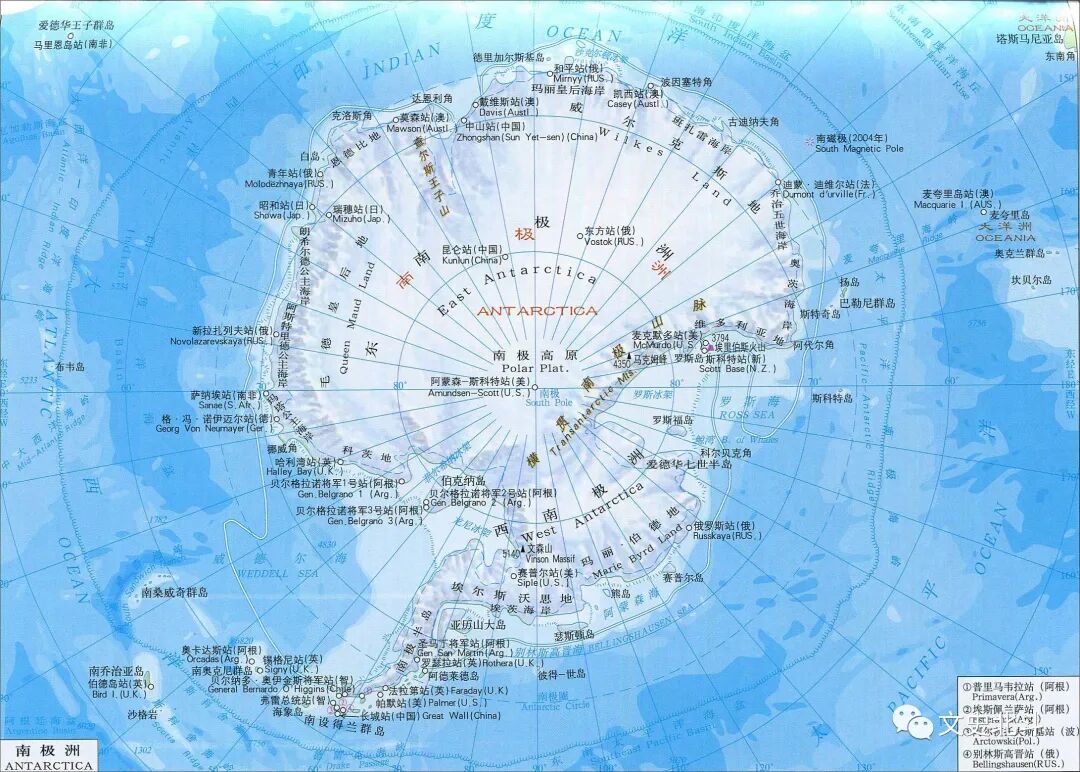 南极洲,英文为Antarctica,英文意思和中文意思一样。在大航海时代,欧洲的航海家就试图发现南方的大陆,但是一直没有实现。1775年,英国的库克船长绕南极航行了3年多也没有发现南极大陆。最终到1909年,欧洲才打到南极大陆。