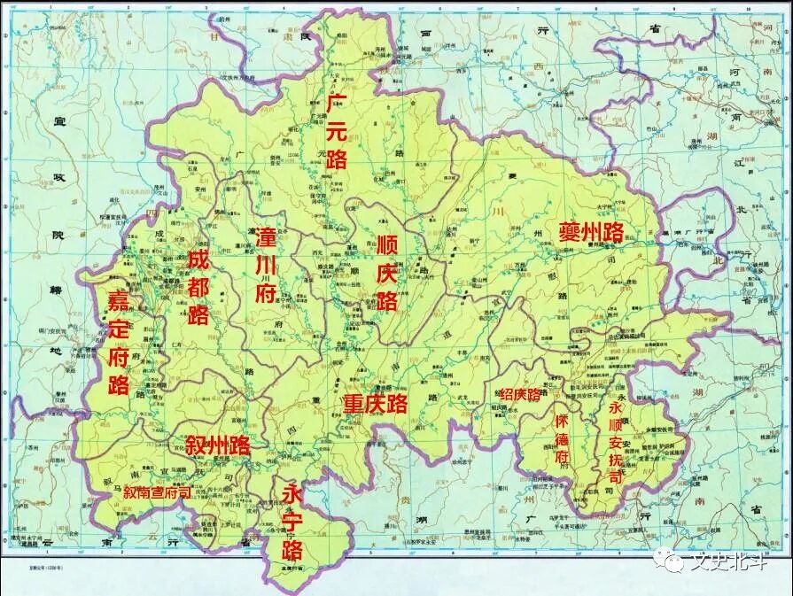 965年,宋灭后蜀政权,置西川路;973年,又增设峡西路,和西川路合称“川峡路”。l001年,分西川路为益州路、利州路,分峡西路为梓州路、夔州路,合称“川峡四路”,简称“四川路”,要注意,这时候巴蜀地区还没有成为一个统一的行政区。