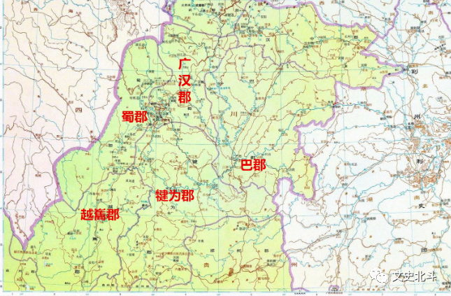 到了汉朝时期,随着汉朝版图的扩大,在巴蜀地区的郡已经增加到了4个,分别是广汉郡(今梓潼)、犍为郡(今宜宾)、越雟郡(今邛都)、巴郡。另外一度出现过梓潼郡、沈黎郡。