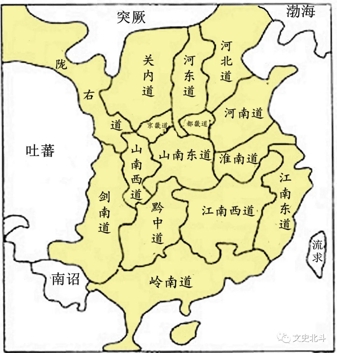 到了魏晋南北朝,州的设置大量增加多,于是变得混乱起来。到了唐朝,州的大小比原来的郡更小了。唐朝前期,在全国设置了10个道,其中位于北方地区的有河南道、河东道、河北道、关内道、陇右道。河南道,管辖今天的河南山东一带,治所在河南府(洛阳);河北道,意思为“黄河之北”,管辖范围和今天京津冀一带;河东道,意思为“黄河以东”,管辖今山西一带。关内道,管辖关中地区;陇右道,管辖河西走廊。陇右的意思为陇头以西,最早称为“陇西”,秦国设置过陇西郡。