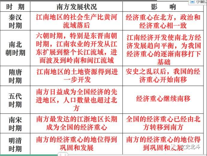 南方更有利于商品经济发展:人类的经济发展都是从自然经济逐渐向商品经济转变。南方河湖众多,拥有大量的优良港口,更有利于商业、对外贸易的发展。例如在西汉时期,岭南一带还是十分落后的,但是广州已经成为了当时中国对外贸易的中心。尤其是在新航路开辟之后,东南沿海的国际贸易更是异常繁荣。北方也有国际贸易路线——丝绸之路,但是这条路凭借的交通工具主要是马匹、骆驼,运输量有限。另外,游牧民族对路上丝绸之路的干扰很大。宋朝开始,路上丝绸之路就衰落了。