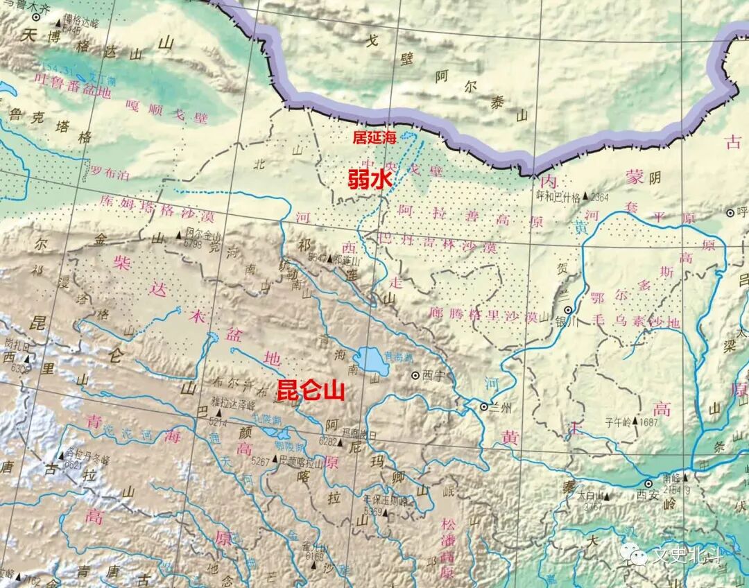 这条河流,现在是中国第二大内陆河,发源于青海祁连山北麓中段,流经青海、甘肃、内蒙古自治区三省。下游称弱水(古弱水),其中内蒙古境内河段称额济纳旗河(额济纳河,西夏语黑水),在居延海消失。黑河下游有西夏黑水城遗址。为什么这两条河流的几个名字都能一一对上号,这难道是意外吗?