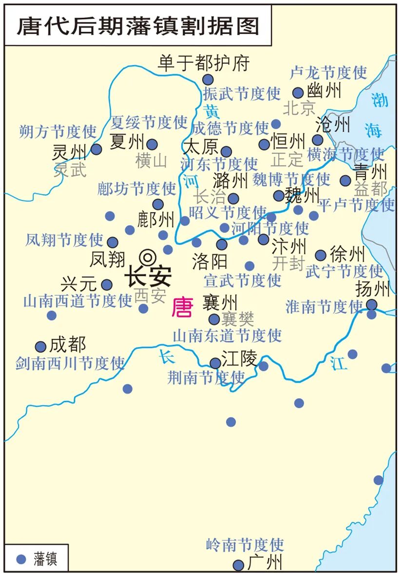 627年,唐太宗依据“山河形便”,将全国划分为了10个道,作为监察区。此后,道逐渐从行政监察机关演变为了地方行政机构。开元十五年,唐玄宗将全国划固定为15个道。安史之乱,唐朝由盛转衰,地方的节度使、观察使、采访使等割据一方。