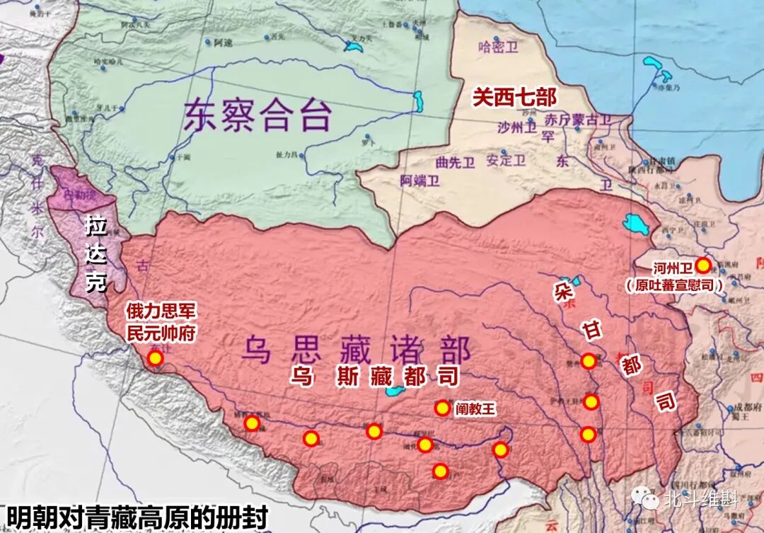明朝时期,朱元璋试图继承元朝的版图,在青藏高原进行了广泛的册封,其中乌斯藏有乌思藏都司,青海一带有朵甘都司、阿里一带有俄力思军民元帅府。然而明朝从未派遣一兵一卒、一官一职驻扎青藏高原,使得明朝对青藏高原的管理有名无实。