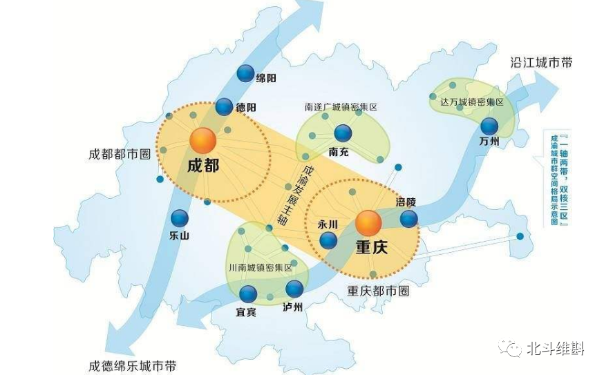 现在四川盆地拥有成都和重庆两座超级大城市,城区人口都超过了1000万,GDP产值都超过了16000亿,是西部地区最大的两座城市。但是四川省的经济发展有严重的失衡现象:整个四川省有8000多万人口,然而四川省的第二大城市——绵阳的经济规模只有2856亿。显然,绵阳无法承担起成渝经济圈第三极的重任。