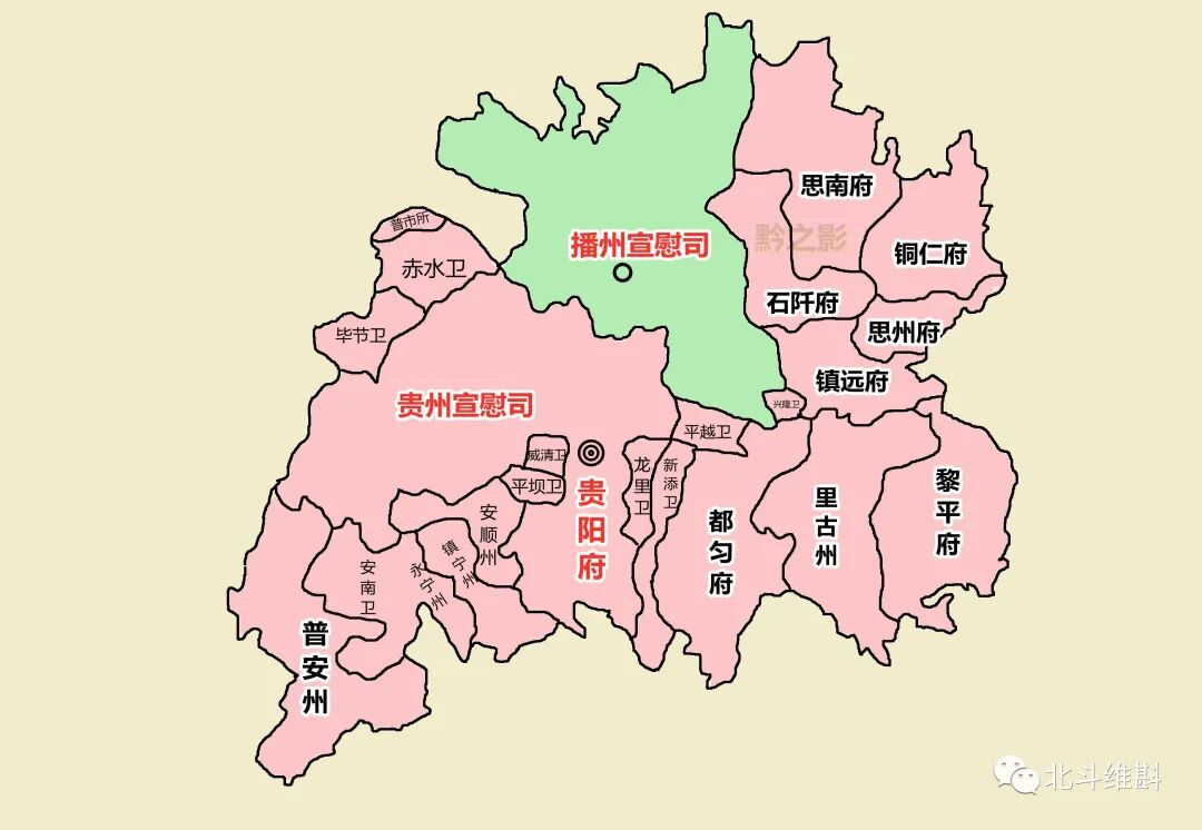 明朝建立后,也同样以贵州城为核心,经营黔中大地。朱元璋推行“调北征南”政策,大规模在滇黔驻扎军队。在行政上,朱元璋将水西土司和水东土司同时纳入贵州城的管辖范围,设置了贵州宣慰司。在军事上,又设置了贵州都司。如此,贵州布政使司虽然尚未成立,但是以贵州为中心的区划呼之欲出。