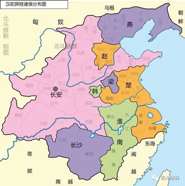 西汉的统治稍微稳定之后,刘邦就通过各种方式消灭这些异姓王。最初是燕王臧荼谋反,刘邦带领大军将之平定。前201年,韩王信投降匈奴,刘邦带领30多万大军出征,反而被匈奴冒顿单于围困于白登山,史称“白登山之围”。经过这次事件后,韩国也就灭亡了。