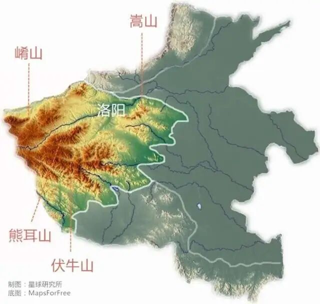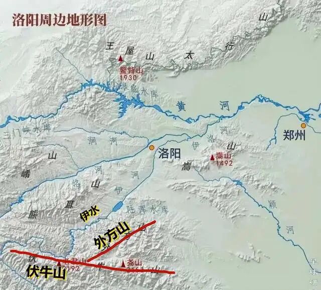 通过以上的分析,基本就确定了《中山经》所描述的范围。其北到山西省的中条山,其南到达了伏牛山,其西到达了华山,其东达到了嵩山。可见,《中山经》描绘的地方,恰好就是洛阳盆地。洛阳被视为天下之中,因而被收录到“中山经”中。有了洛阳为坐标,我们就能够继续考证《山海经》中的其他地方了。