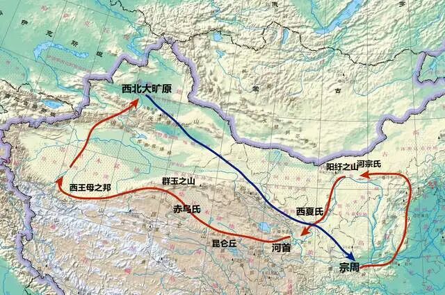 周穆王到达的西王母之邦到底在哪里呢?原文提到从宗周到达阳纡之山、河宗氏有3400里,这里大约是河套平原一带。从阳纡之山向西到达西夏氏,大约2500里,从西夏氏向西到达河首有1500里,从河首向西到达昆仑之丘大概700里,也就是从河套平原到达昆仑山有4700里,大约1950公里。