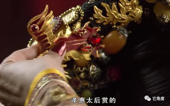这支步摇是太后刚做德妃的时候,孝惠太后赏的,表达的就是婆婆对儿媳的欣赏、肯定。