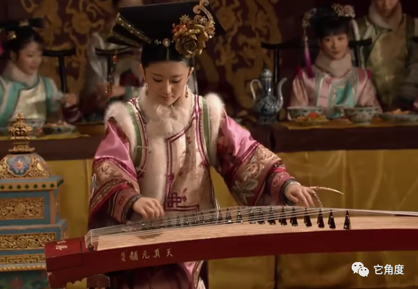 家宴上,为了引起皇上关注,富察贵人十分卖力地弹奏古筝,一曲《高山流水》弹得动听,她自己也十分专注、认真。