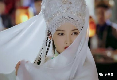 《如懿传》原著中,寒香见和皇上之间,有“杀夫之仇”,所以,寒香见一出场,就是带着仇恨的。白纱遮面,遮不住眉眼中的怒气,这样的寒香见,有一种冷傲、凌厉的美。