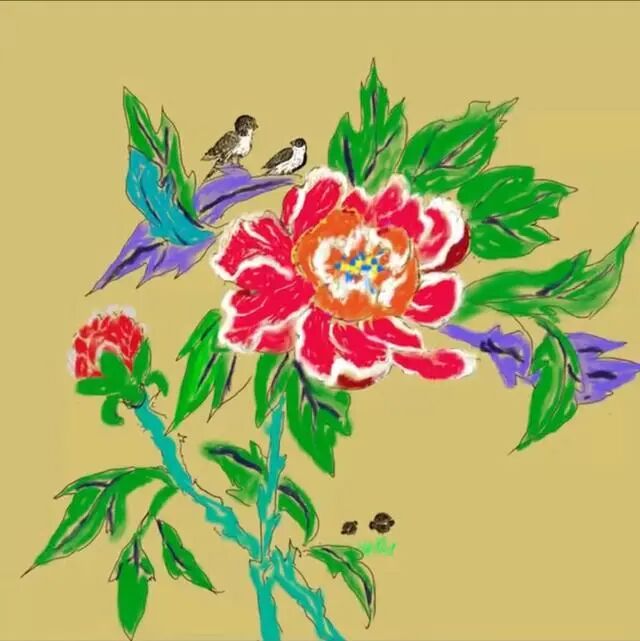 几笔勾勒绝美牡丹