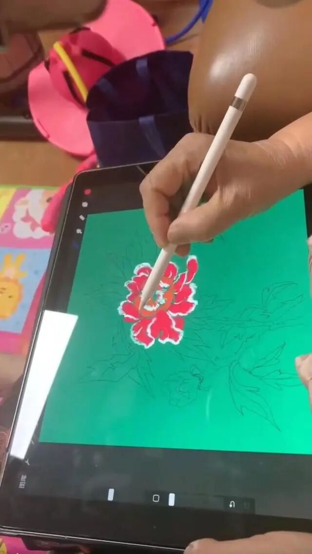 他决定教外婆用平板电脑画画