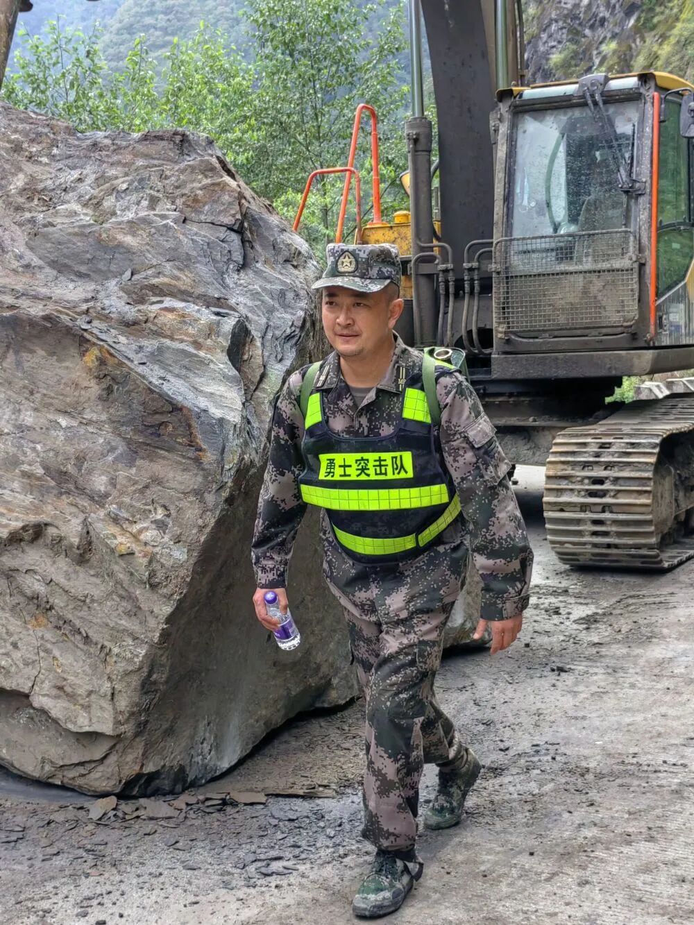 第三天,尚未打通道路的和坪村道路抢险施工队急需燃油,帅飞再次报名参加运油小分队。通往和坪村的路上,一边是几乎垂直的崖壁和不断掉落的岩石,一边是湍急的田湾河,13人组成的勇士突击队沿路冲过好几个落石阵,来回步行14公里,终于将600斤燃油送到施工队手中。