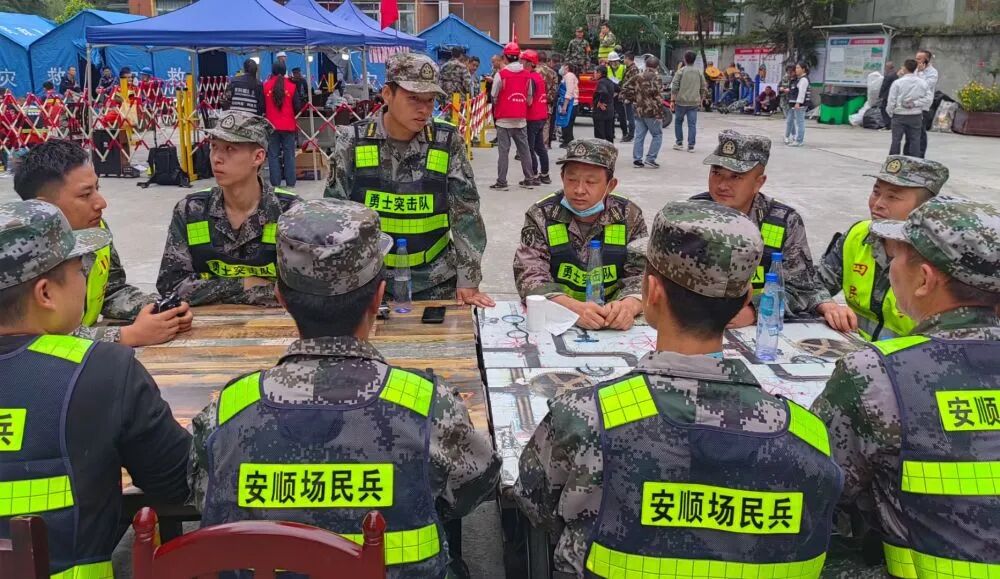 9月8日,安顺场民兵组成的勇士突击队在草科乡政府领受当天任务。(图片由受访者提供)
