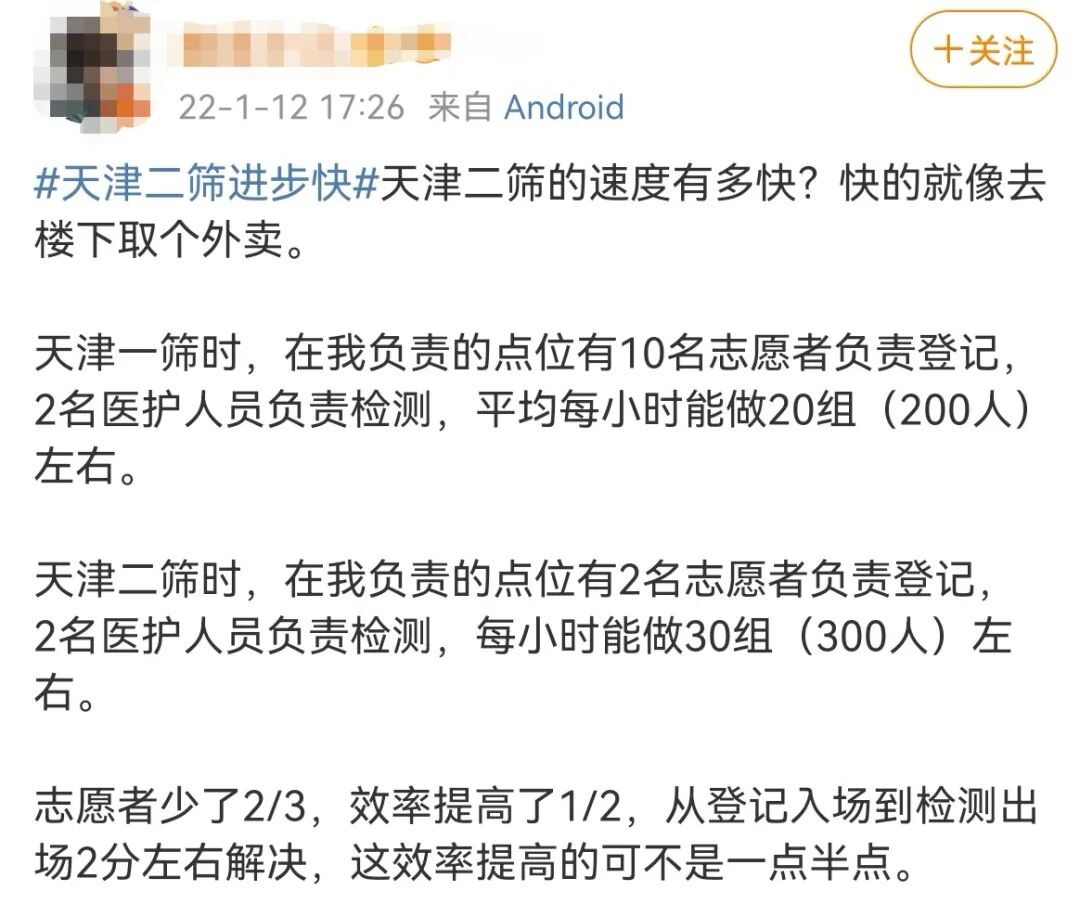“天津二筛有多快?就像下楼取外卖”