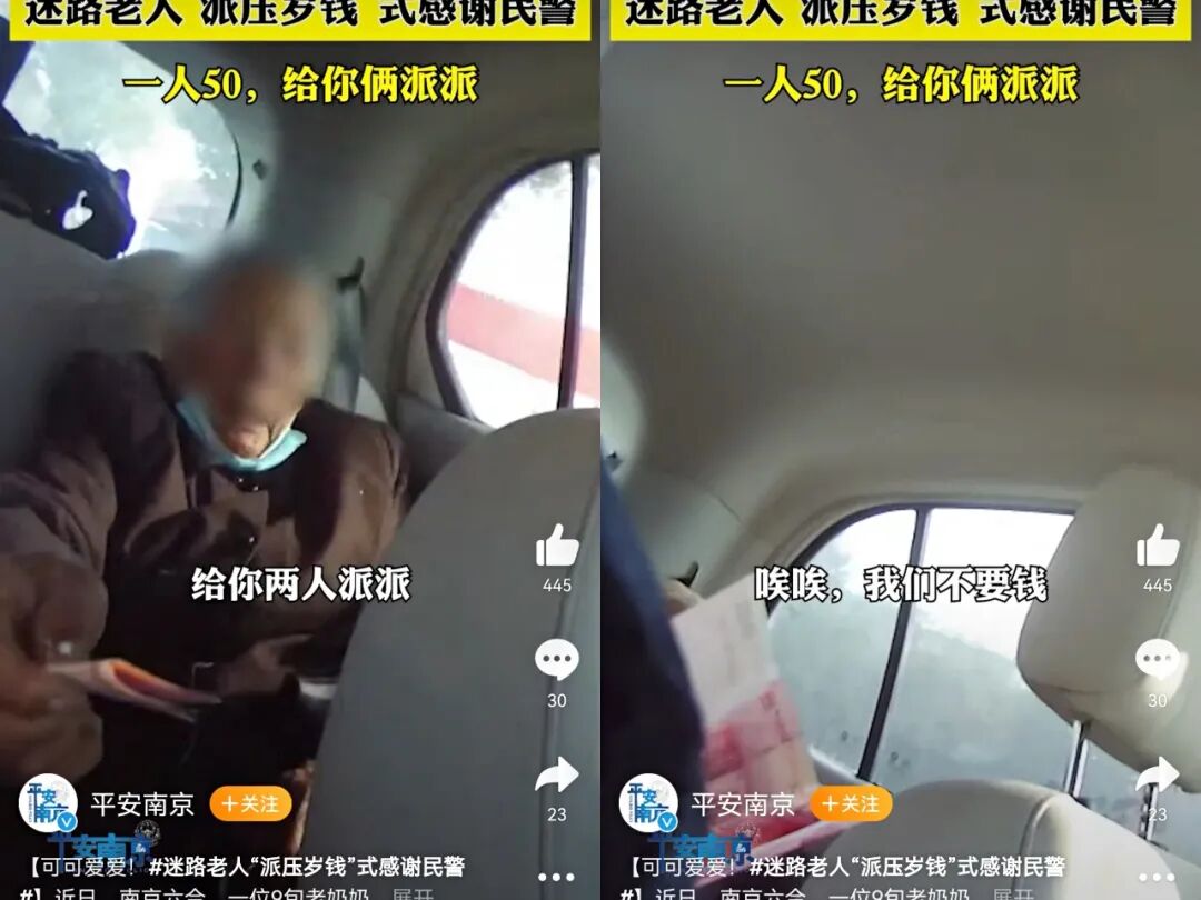 两个民警婉拒了老奶奶的压岁钱