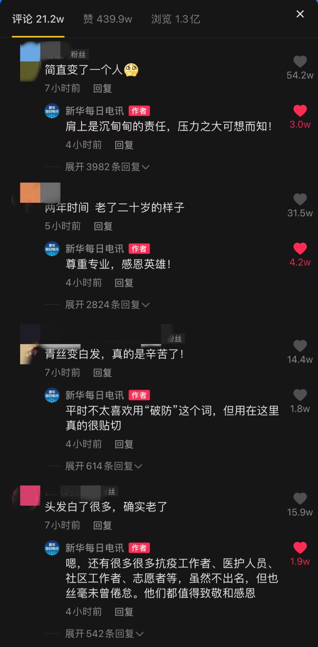 “新华每日电讯”抖音相关报道的网友评论截图。